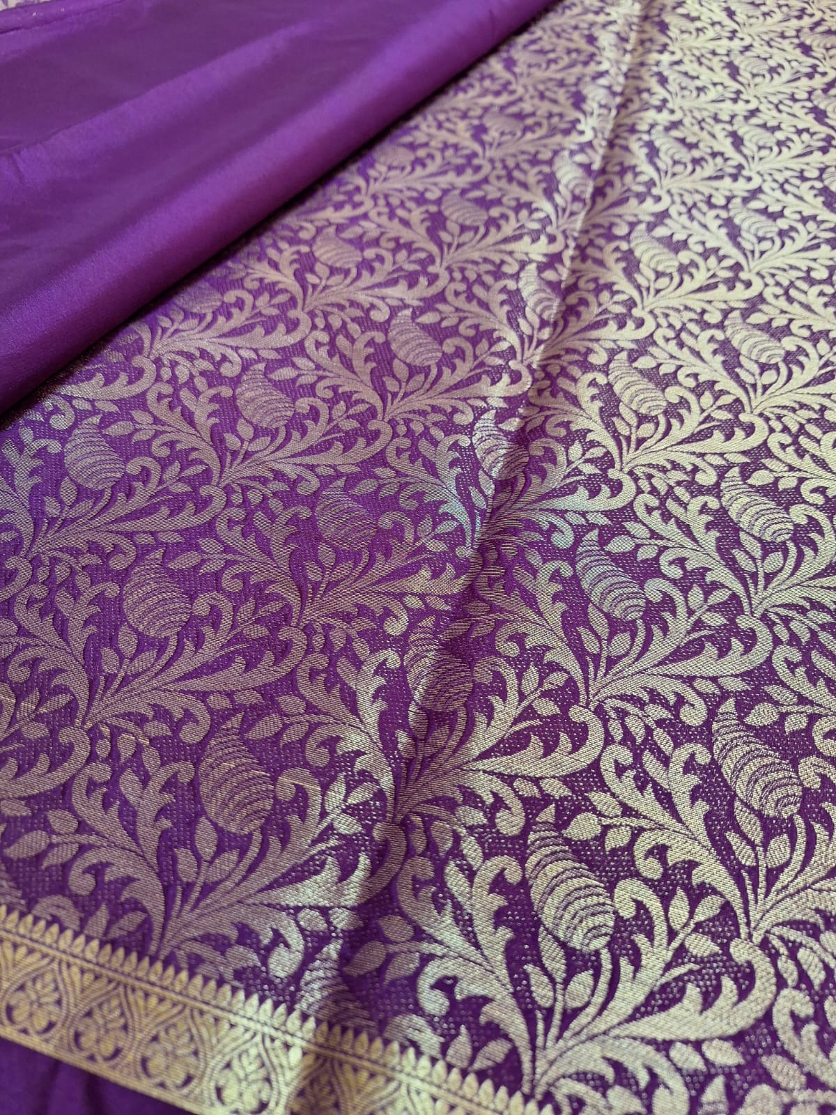 Semi Mysore Crepe Silk - Royal Purple with Golden Brocade Weave